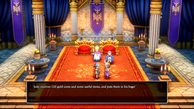 Receive useful items and gold coins from the king of Tantegel. Use the money to buy items and equipment. Remember, you must equip items to use them!