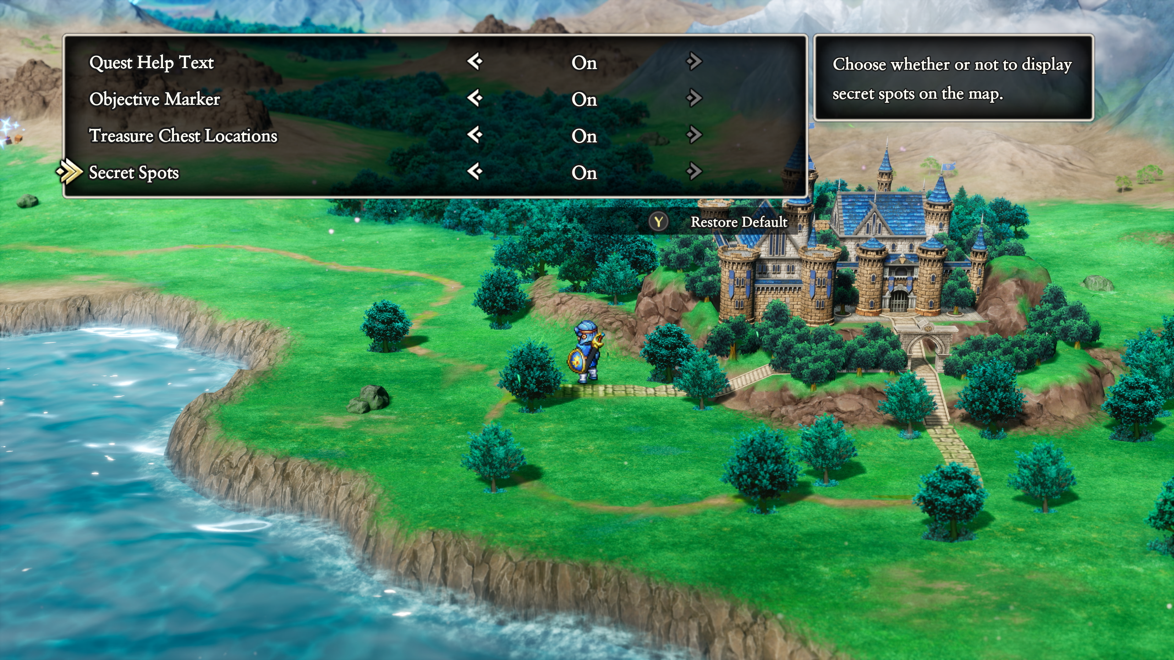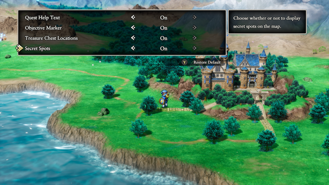 In this game, you can now choose in the settings whether to display the locations of hidden zones (secret spots) on the field, as well as the positions of treasure chests in towns and dungeons on the map.