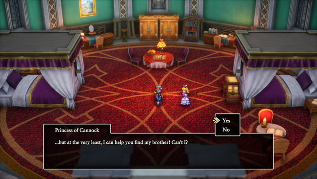 While searching for the Prince, the Princess of Cannock joins you in battle! You can't give her action commands at this point, but she'll help the protagonist with various attacks and healing spells.