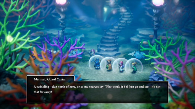 As you progress through DQ II, the faeries will ask you for a favor. Collect the living memories scattered across the ocean floor to unravel the history of Alefgard.