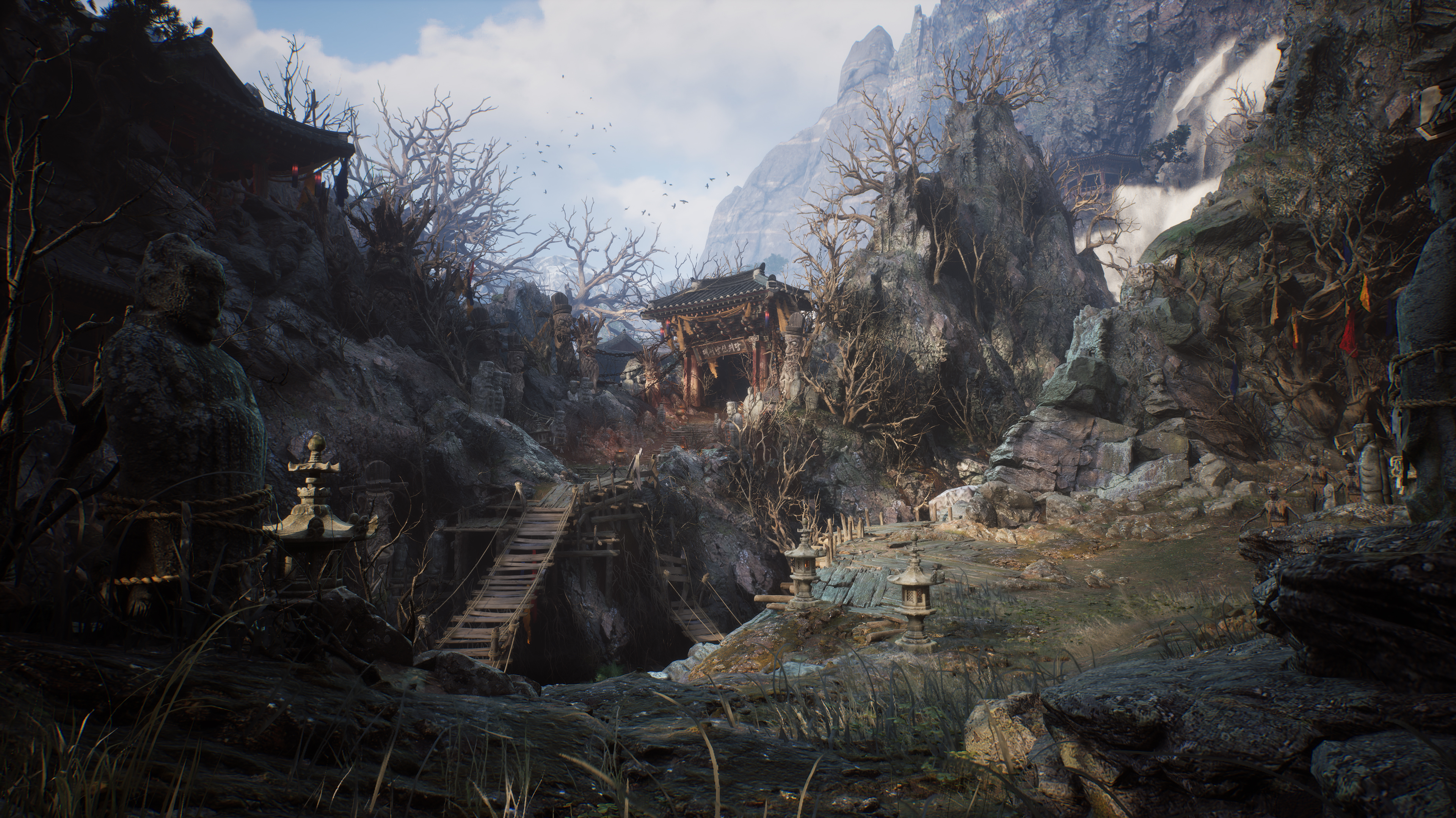 The trailer shows off a number of cinematic and gameplay scenes rendered in what looks to be Unreal Engine 5 (MADNGINE's other game, the MMORPG Night Crows, also uses Unreal Engine 5). The scenes showcase an expansive fantasy world inspired by Korean myth and folklore. The gameplay involves action-based combat against large fantasy enemies and bosses, where the player is aided by up to three NPC companions, each with unique abilities and roles. One member, for example, appeared to wield a large shield, banging on it to attract the enemy boss' attention. Other scenes showed off cooperative actions, such as deploying large barriers to ward off attacks or catching a companion thrown into the air by the enemy. The game is said to be single-player, so the companions are NPCs.